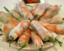 Xin chao, or hello, the food of the day today is the beautifully crafted Vietnamese Spring Rolls. Their very appearance gives off a unique look only found in oriental culture. Being of Asian decent myself, specifically from Korea, I am very fond of this type of cuisine. As you can probably see from the picture, spring rolls are very similar to the more common egg roll. However there are a few differences such as the fact that while egg rolls are usually fried, spring rolls are usually not. And a spring roll's often paper thin rice wrap is very different from the thicker, more tortilla wrap of the egg roll.